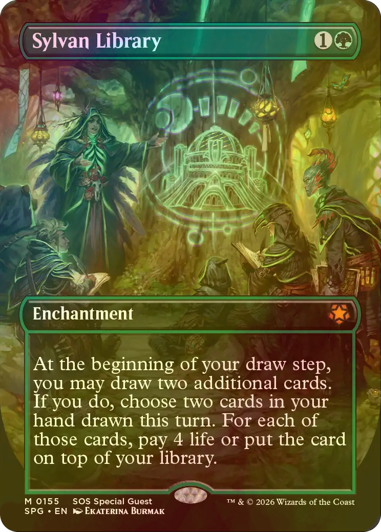 [FOIL] 森の知恵/Sylvan Library (全面アート版) 【英語版】 [SPG-緑MR]