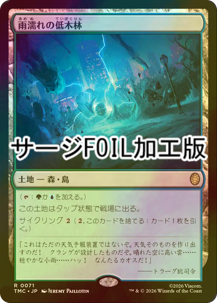 [FOIL] 雨濡れの低木林/Rain-Slicked Copse (サージ仕様) 【日本語版】 [TMC-土地R]