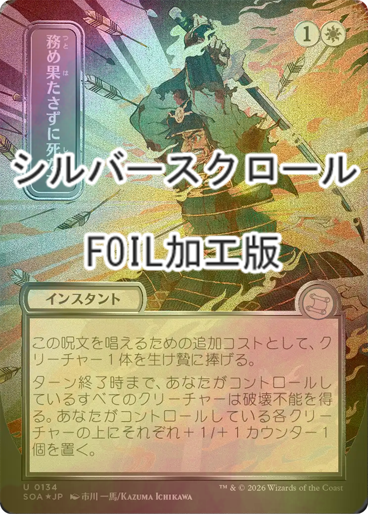 [FOIL] 務め果たさずに死なず/Duty Beyond Death (全面アート版・シルバースクロール仕様) 【日本語版】 [SOA-白U]