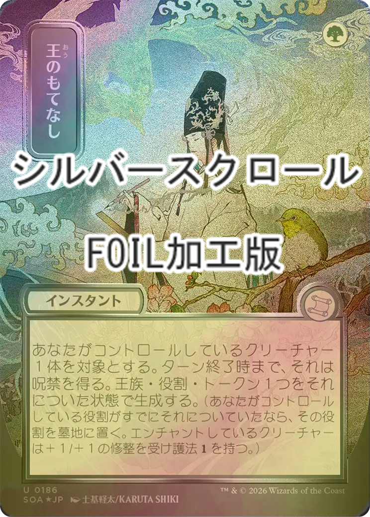 [FOIL] 王のもてなし/Royal Treatment (全面アート版・シルバースクロール仕様) 【日本語版】 [SOA-緑U]